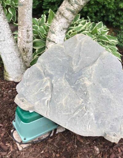DekoRRa Products MockRock© rock enclosures are made with RealRock™ textured material. This gritty, tough, and variegated rock-like surface is astonishingly realistic and blends in with other natural textures. All Dekorra rock enclosures are made in the USA from recyclable materials. RealRock™ offers incredibly realistic aesthetics and unmatched longevity in virtually any climate. The sturdy reinforced edge around the bottom of each Dekorrra rock adds weight and strength that can withstand 100 lbs per square foot. A patented flange design secures the enclosure to the ground. Heavy-duty stakes are included with each model. Artificial rock covers are available in a variety of colors.
