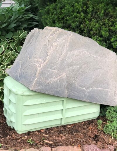DekoRRa Products MockRock© rock enclosures are made with RealRock™ textured material. This gritty, tough, and variegated rock-like surface is astonishingly realistic and blends in with other natural textures. All Dekorra rock enclosures are made in the USA from recyclable materials. RealRock™ offers incredibly realistic aesthetics and unmatched longevity in virtually any climate. The sturdy reinforced edge around the bottom of each Dekorrra rock adds weight and strength that can withstand 100 lbs per square foot. A patented flange design secures the enclosure to the ground. Heavy-duty stakes are included with each model. Artificial rock covers are available in a variety of colors.