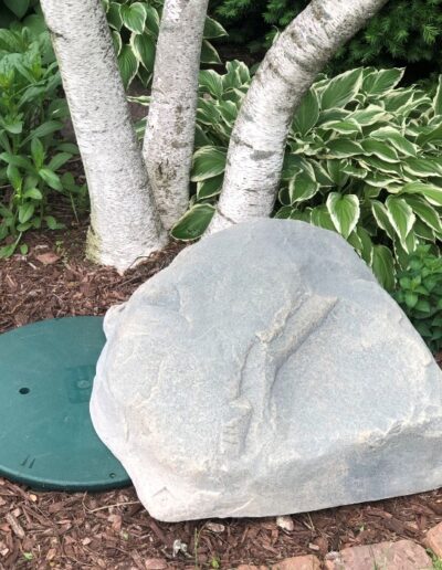 DekoRRa Products MockRock© rock enclosures are made with RealRock™ textured material. This gritty, tough, and variegated rock-like surface is astonishingly realistic and blends in with other natural textures. All Dekorra rock enclosures are made in the USA from recyclable materials. RealRock™ offers incredibly realistic aesthetics and unmatched longevity in virtually any climate. The sturdy reinforced edge around the bottom of each Dekorrra rock adds weight and strength that can withstand 100 lbs per square foot. A patented flange design secures the enclosure to the ground. Heavy-duty stakes are included with each model. Artificial rock covers are available in a variety of colors.